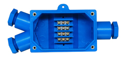 本产品适用于有瓦斯或煤尘爆炸危险的煤矿井下信号、通讯等电路电缆连接、分接之用。外壳采用阻燃、抗静电ABS工程塑料注型而成,具有坚固耐压、耐燃、耐腐蚀的优点。产品共分为二通一~三对,三通一~三对,四通五~二十对,六通十~五十对,八通三十对、八通一百对。