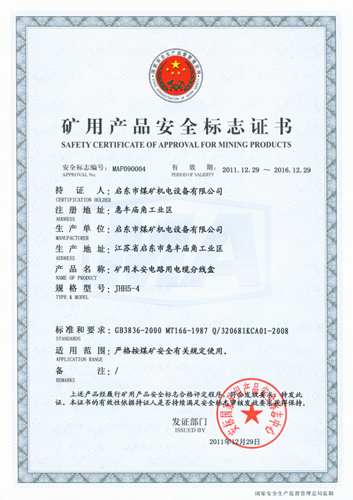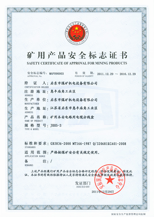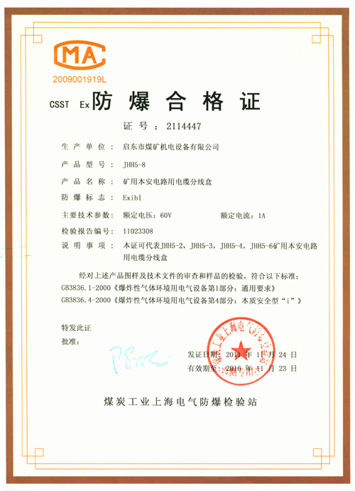 | 【JHH5系列矿用本安电路用电缆接、分线盒证件】 |