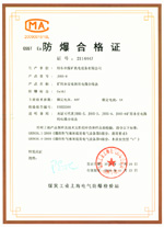 防爆合格证号:2084339 安全标志准用证号:MAF090003 |